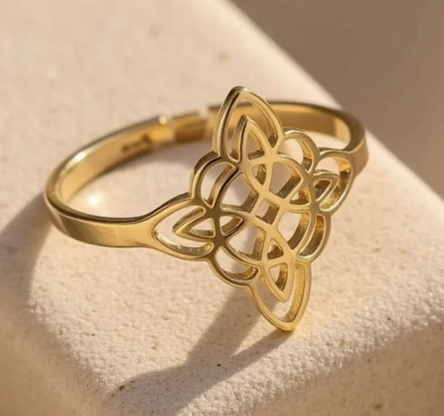 Bague noeud de sorcière. C’est un rappel discret mais puissant de votre force intérieure et de votre droit à la sérénité. Symbole ancestral, le noeud de sorcière unit les quatre éléments : terre-eau-feu-air. II évoque l’interconnexion de toutes choses, nous rappelant que rien n’est séparé dans l’univers. Véritable talisman, cette bague protège des énergies négatives, renforce l’ancrage et célèbre la féminité sacrée. Matériau :