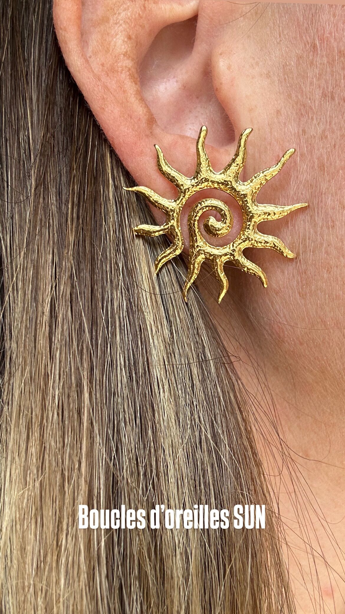 Les boucles d’oreilles “SUN”, en forme de soleil viendra sublimer vos tenues d’été et donnera une touche d’originalité a votre look.