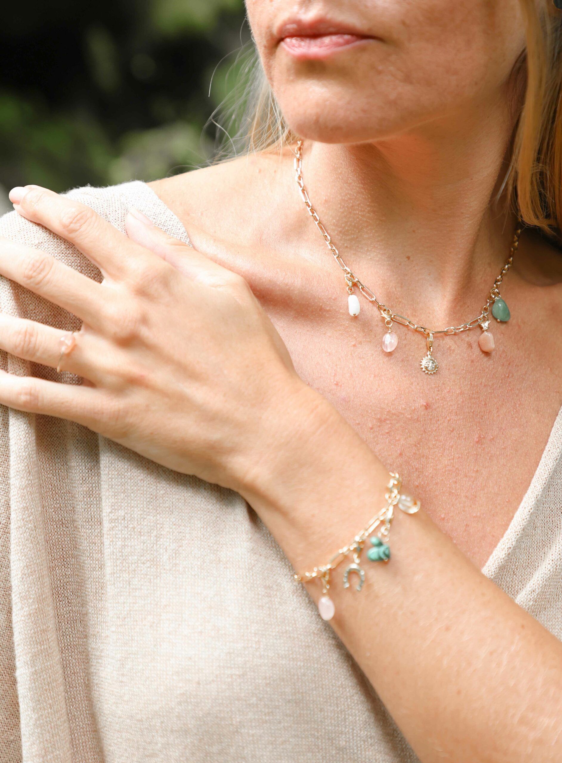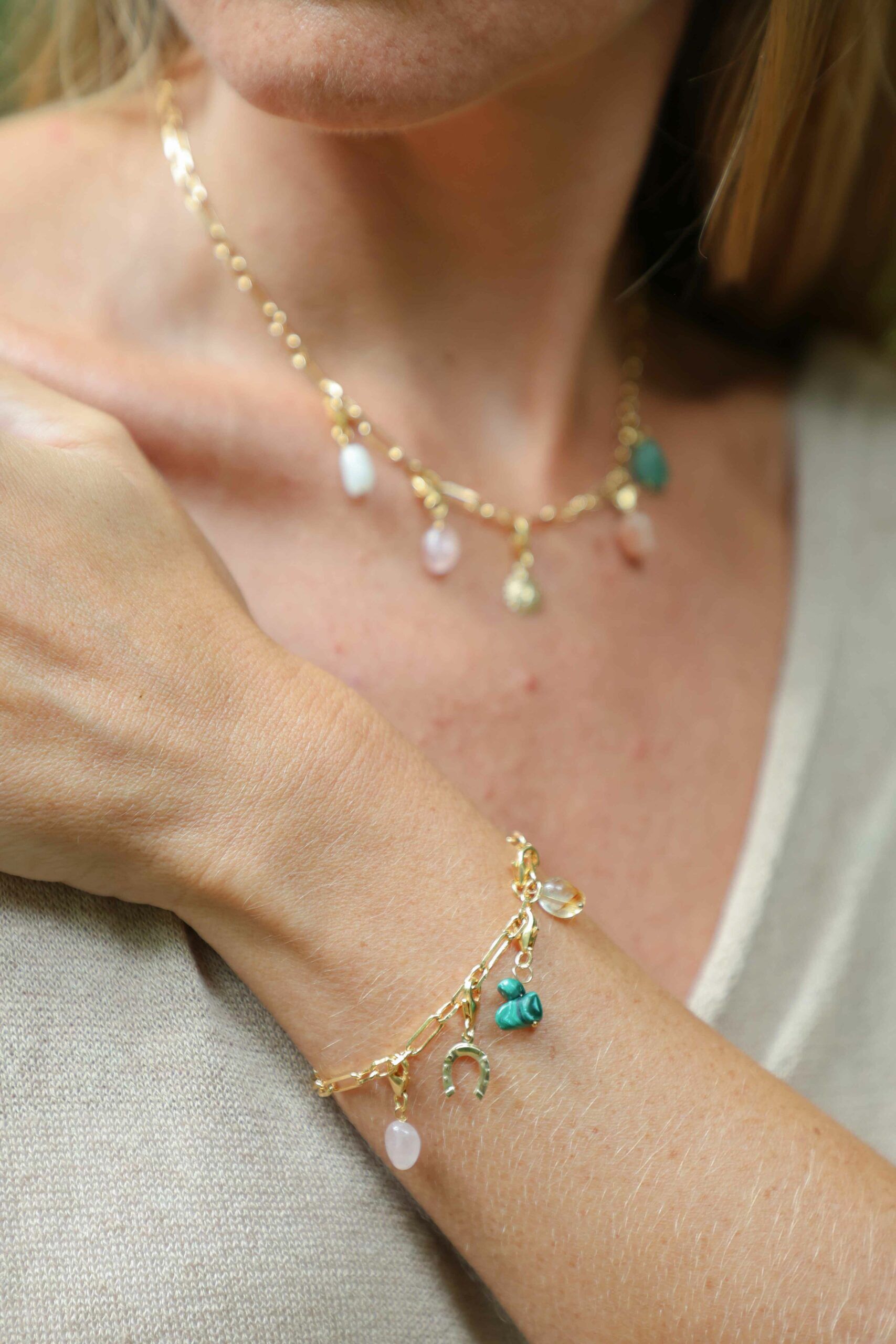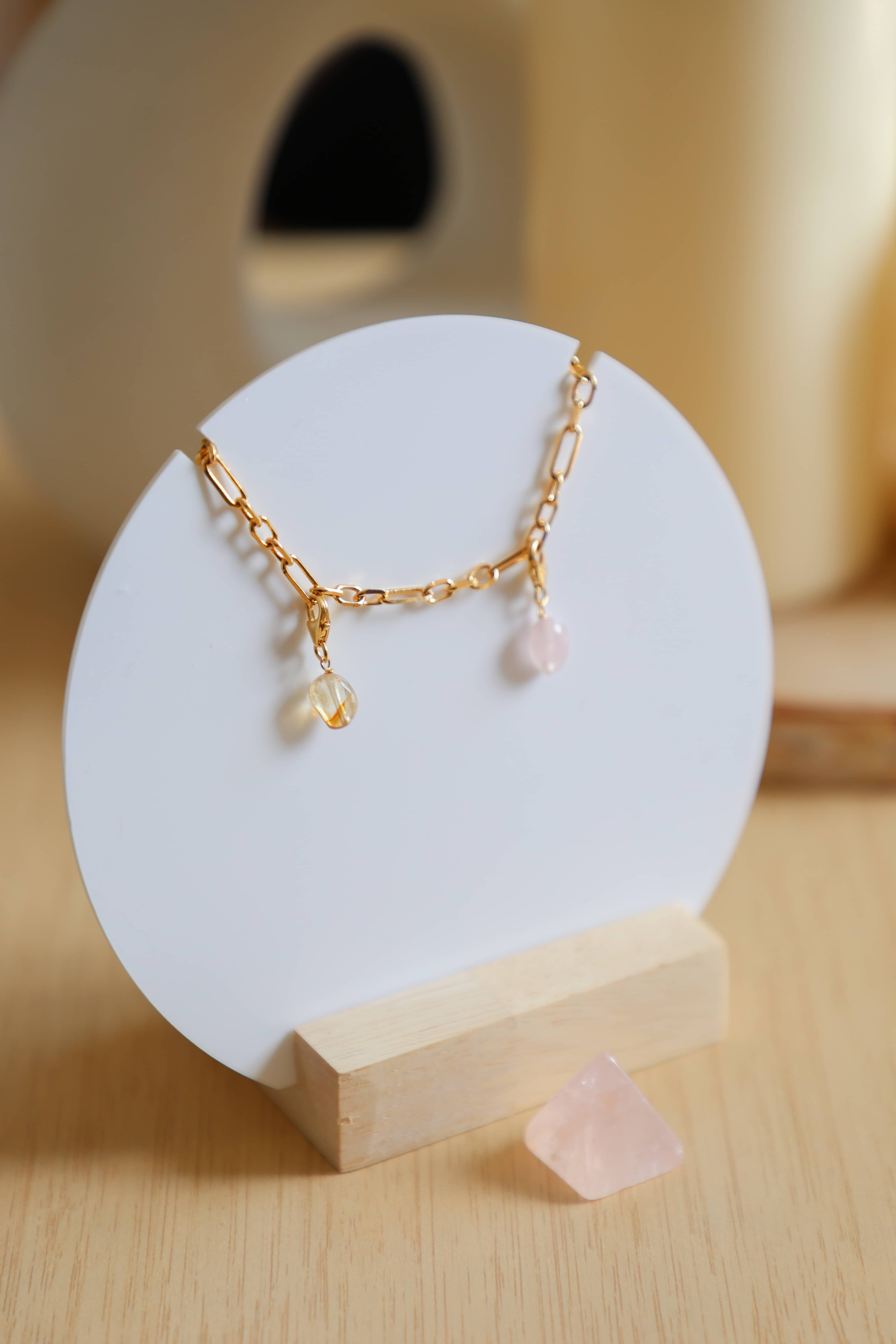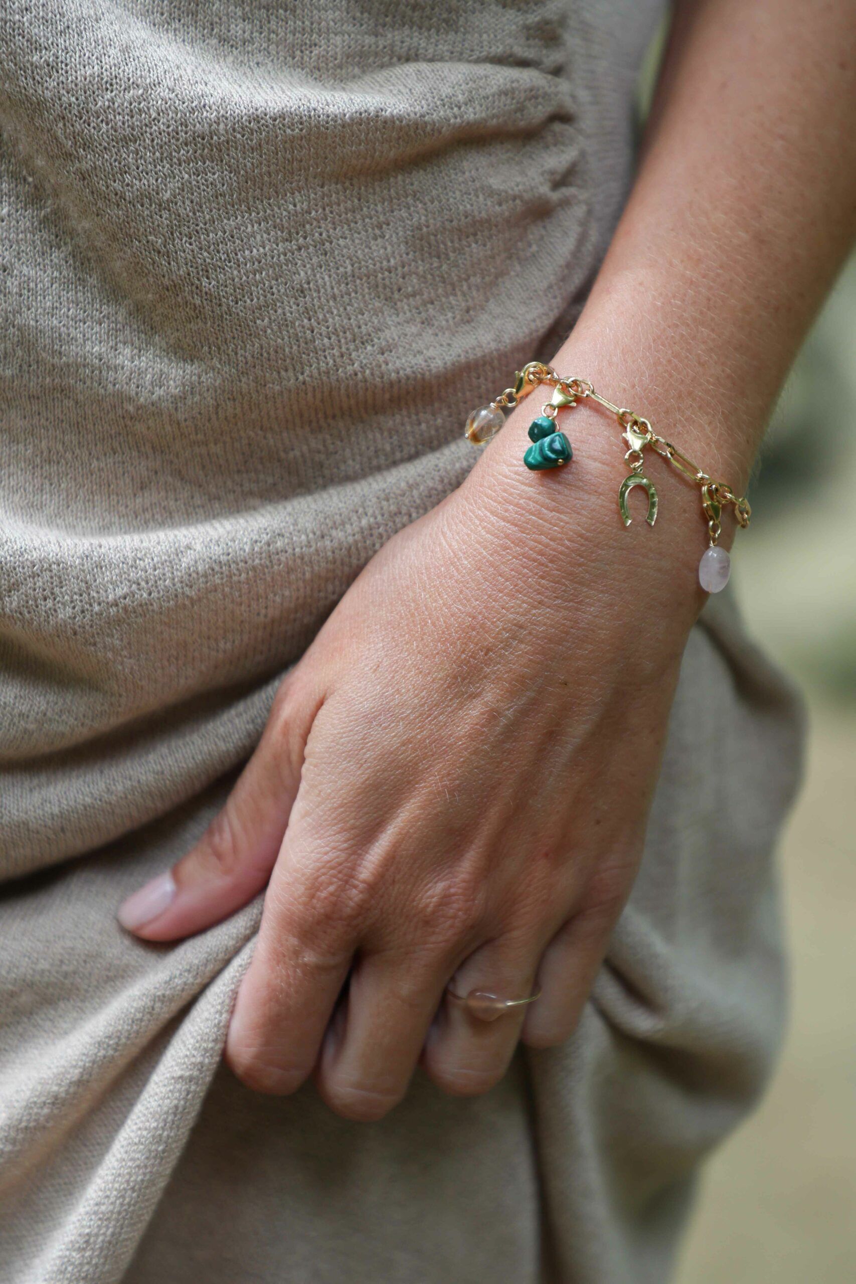 Bracelet en gold filled, à porter seul ou personnalisez votre bracelet avec les pendentifs grigris Lauviah en pierres naturelles ou/et avec les grigris Amulettes.