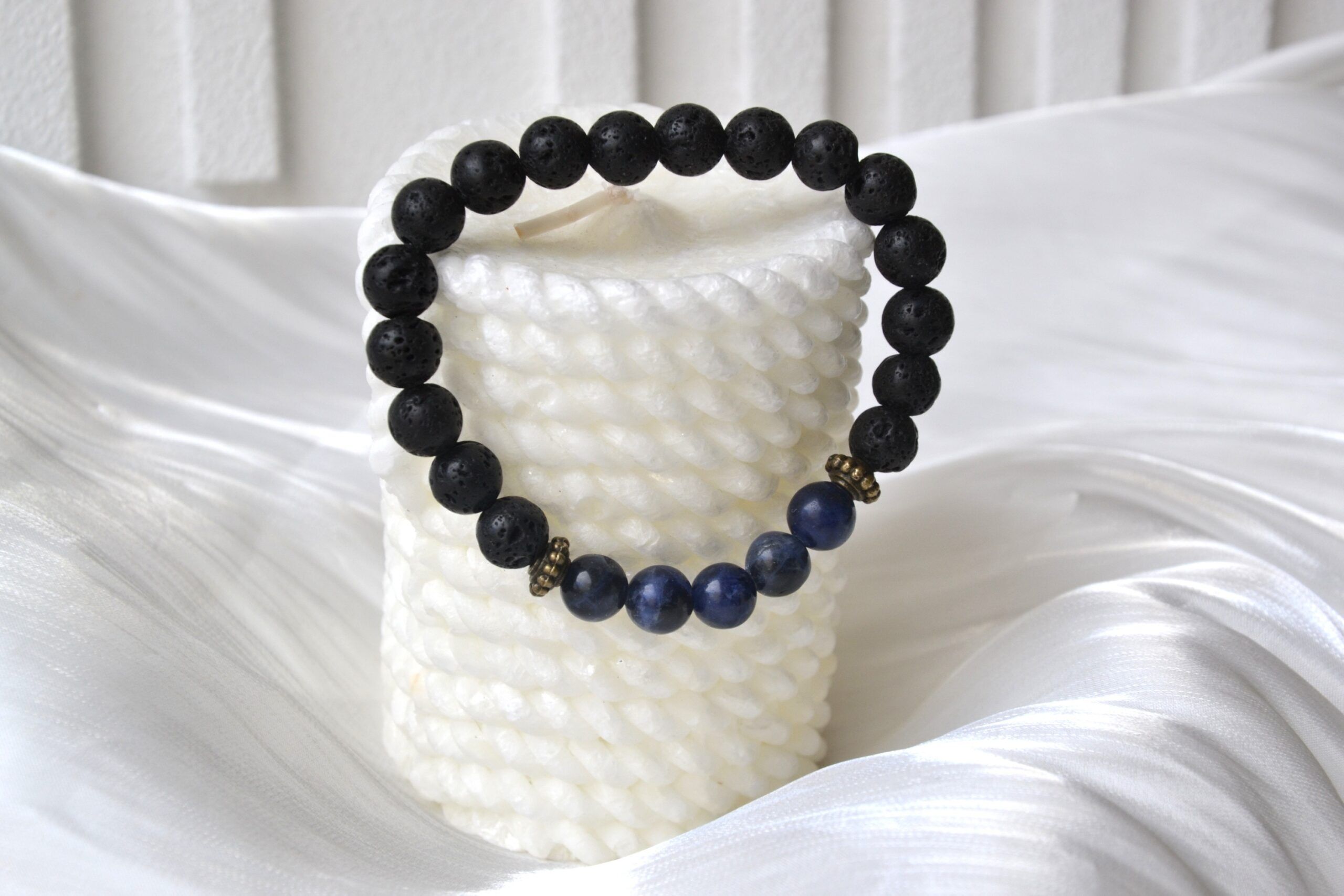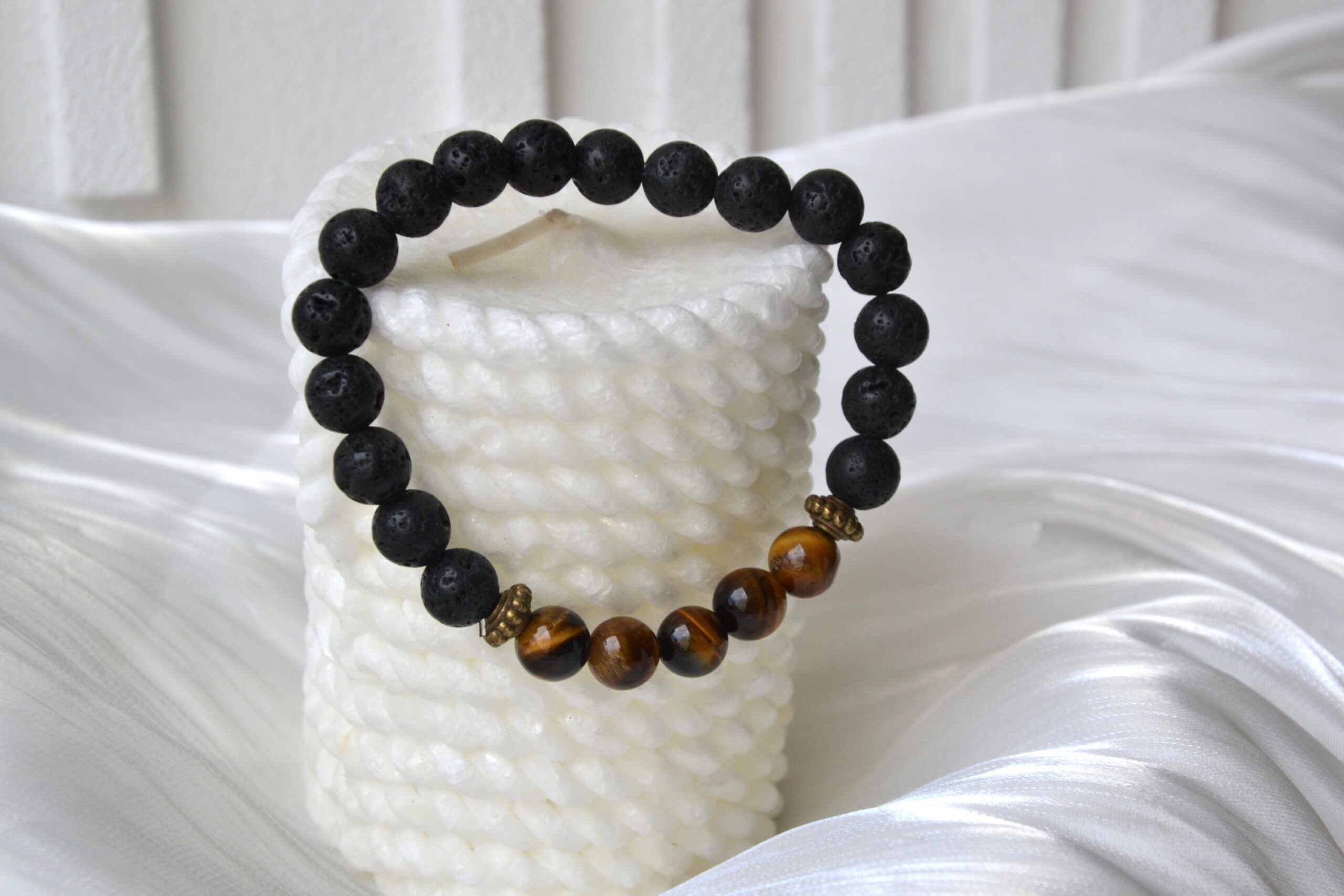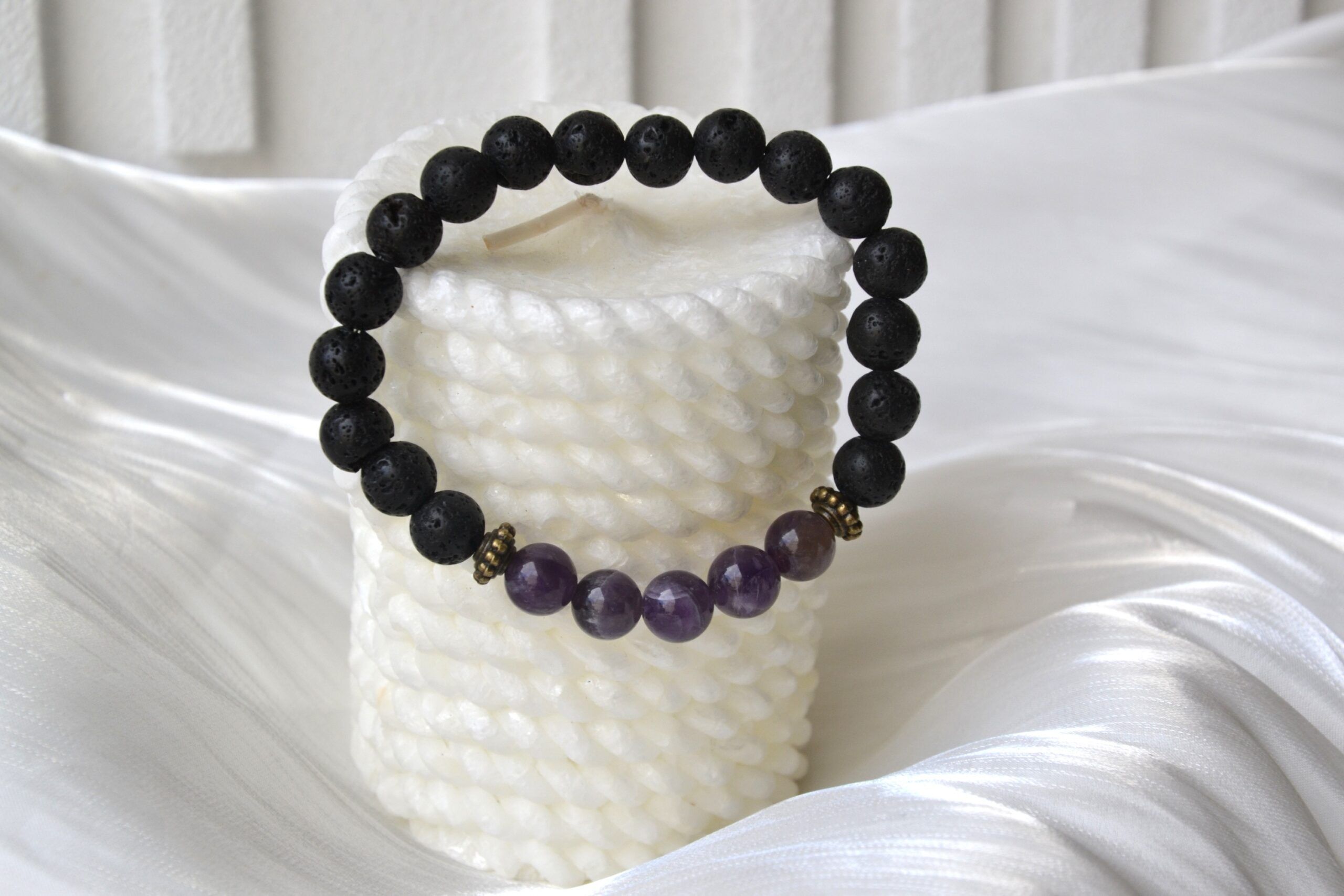 Collection de bracelets avec différentes pierres naturelles et pierres de lave Améthyste pour l’apaisement : soulage stress et anxiété Oeil de tigre pour la protection et confiance en soi Lapis lazuli pour la communication et l’éveil spirituel Les bijoux sont purifiés, chargés et magnétisés avant envoi