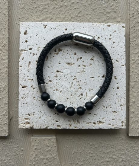 Bracelet élégant en cuir de vachette et en acier inoxydable avec des pierres naturelles.