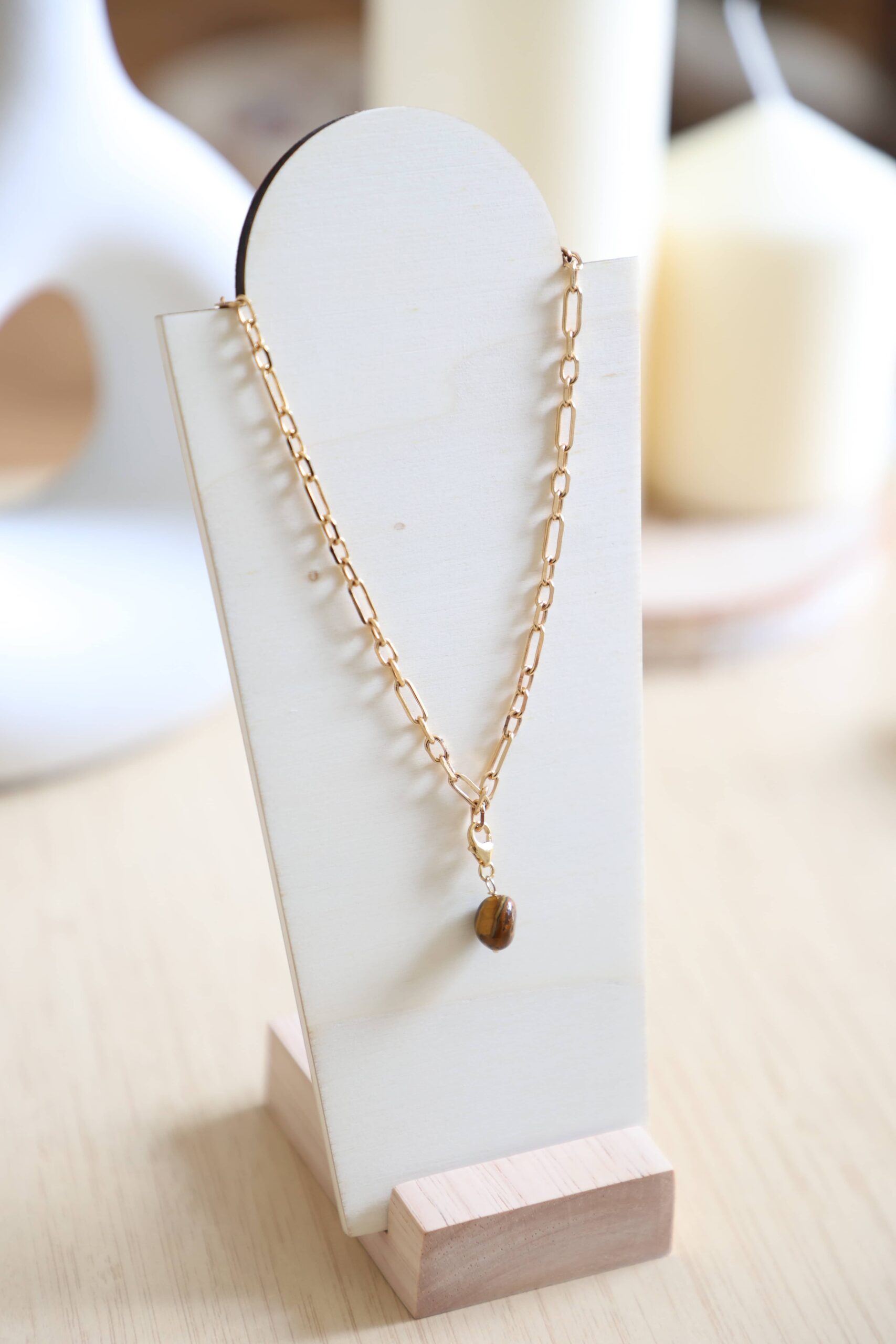 Collier en gold filled, à porter seul ou personnalisez votre collier avec les pendentifs grigris Lauviah en pierres naturelles ou/et avec les grigris Amulettes.