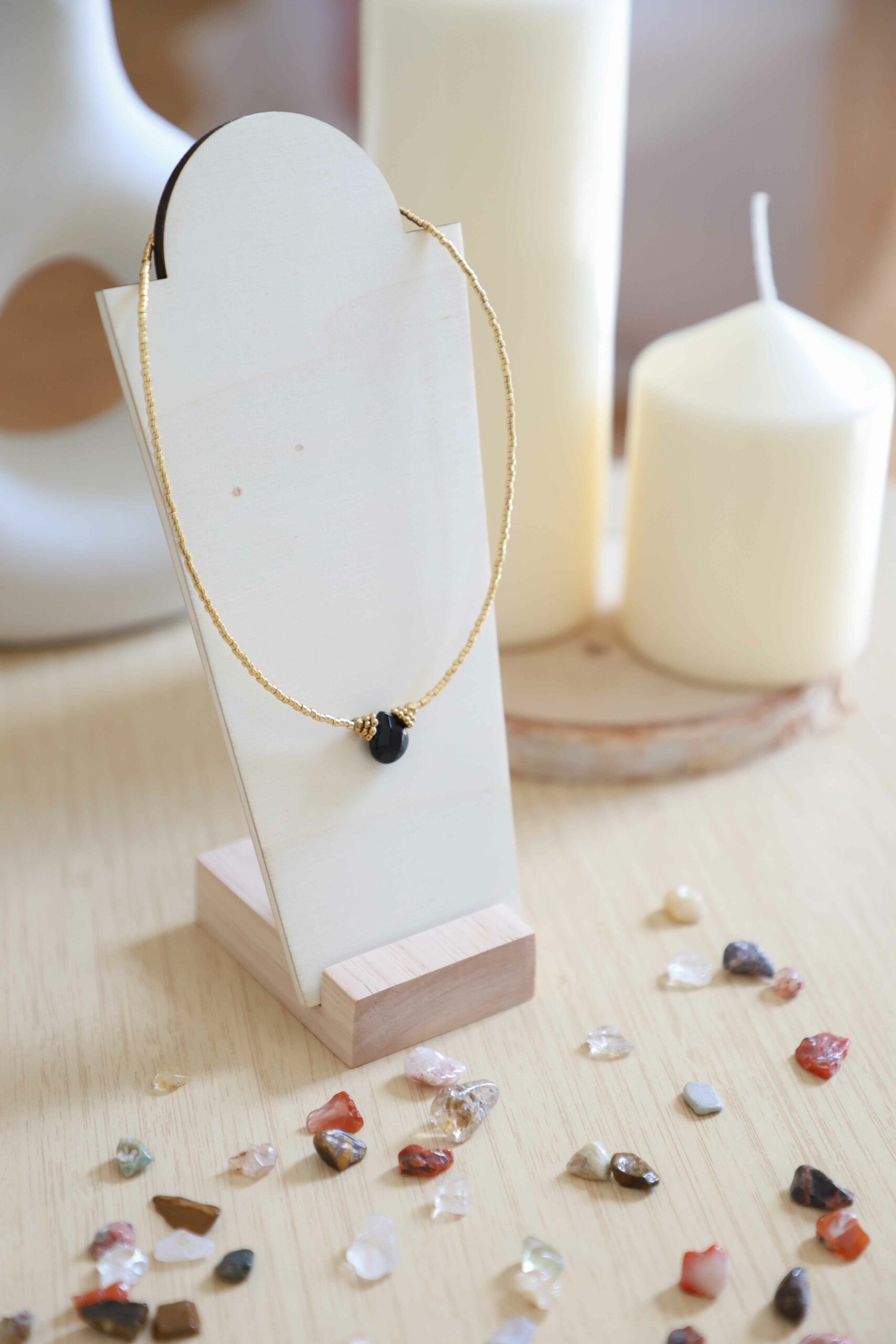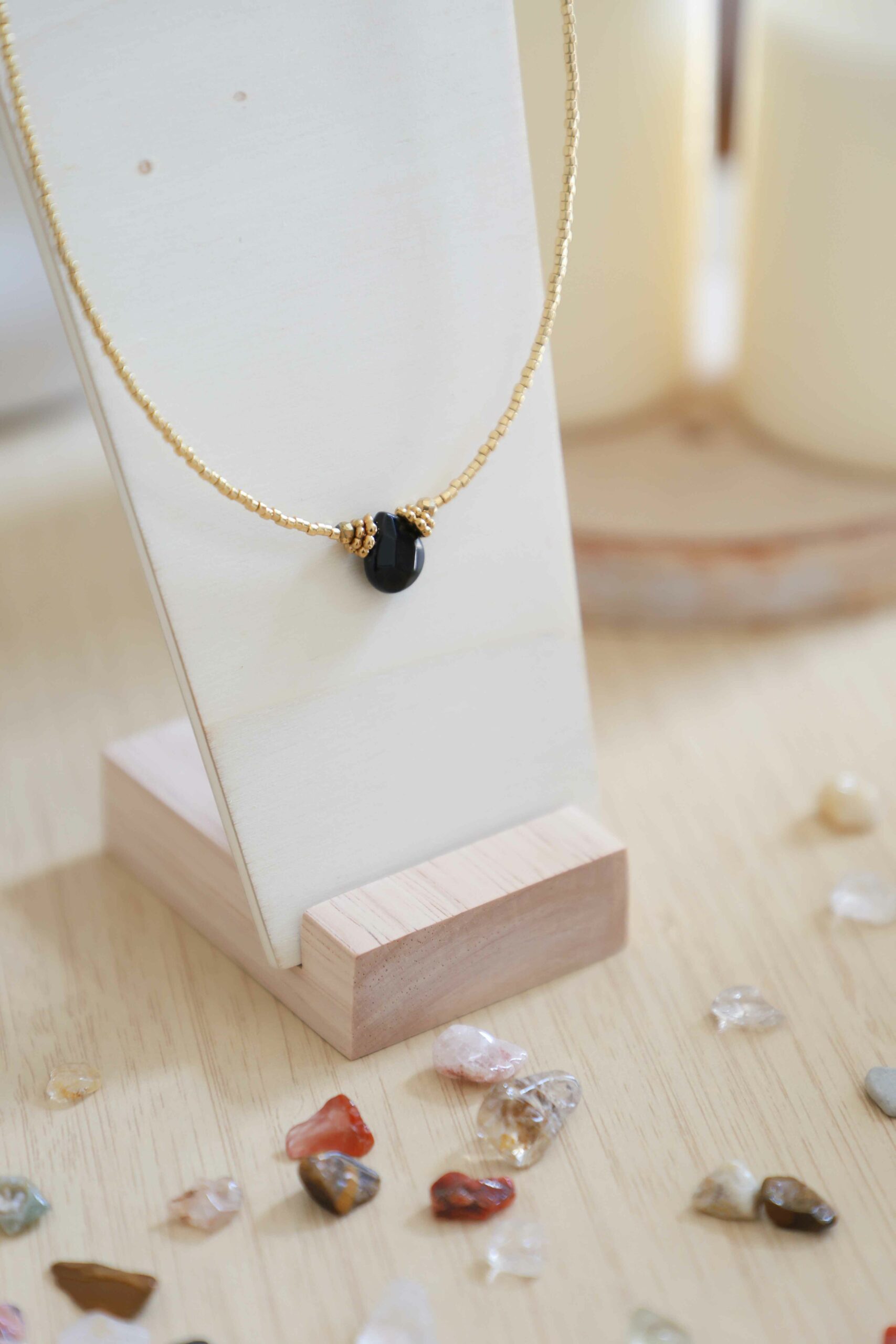 J’ai acheté le collier ras de cou JOY avec la pierre de protection « Agathe noire ». Il est délicat, discret et très féminin, il peut se porter avec tous les styles vestimentaires, seul ou en superposition.