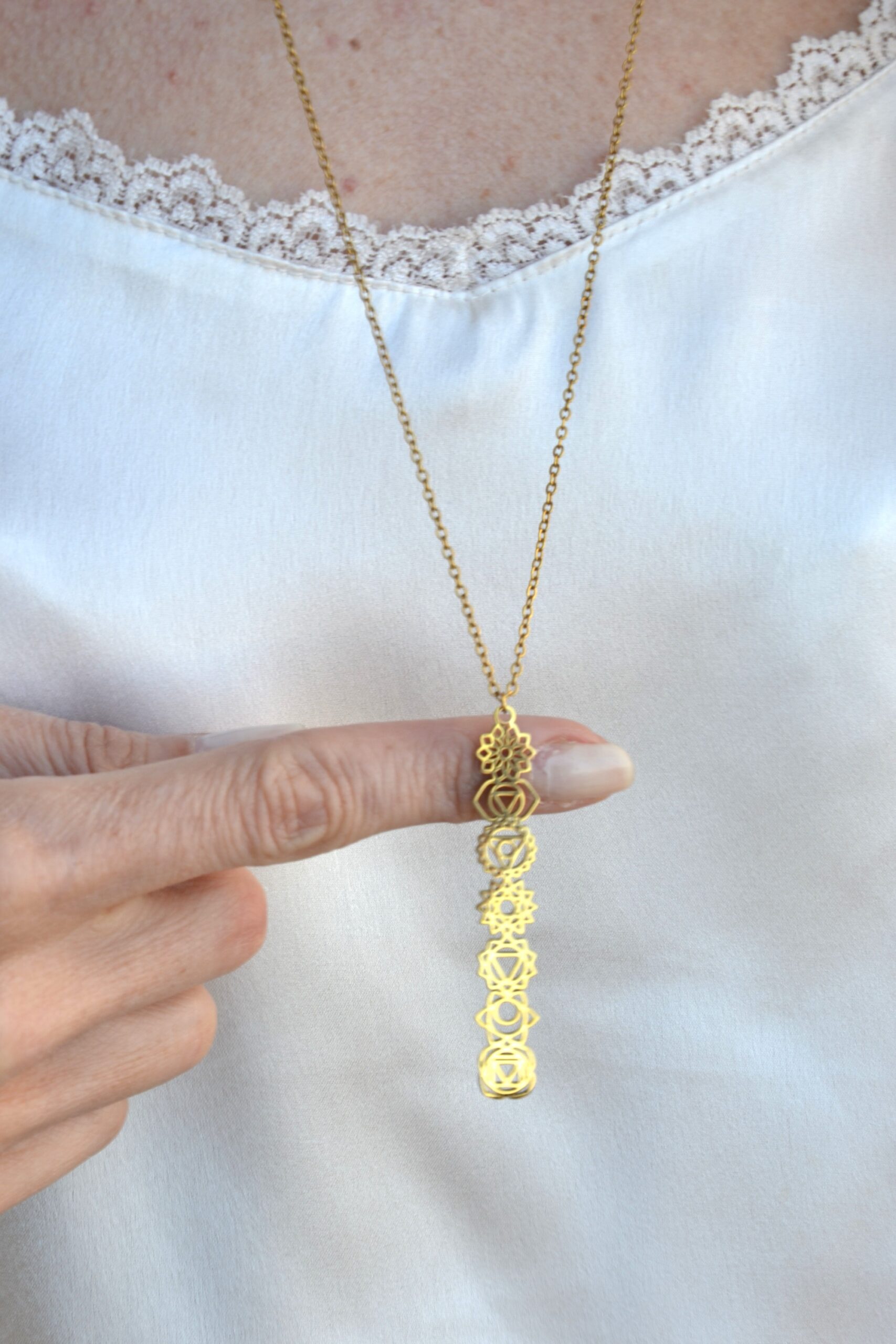 Très joli sautoir chakras le design est fin et élégant. J’adore les symboles alignés c’est discret et original. Il habille parfaitement une tenue et apporte une belle énergie !